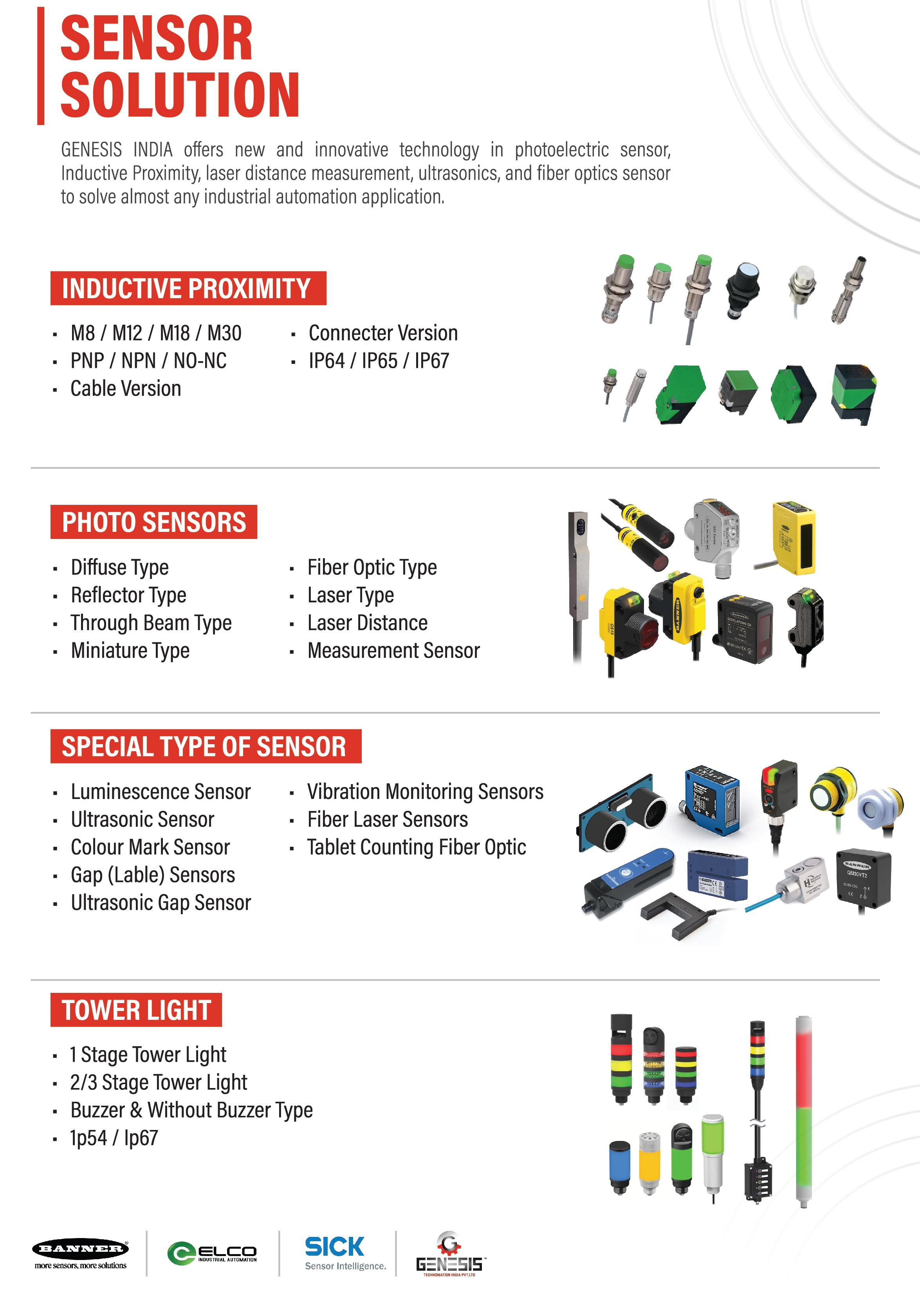 ## GX Sensor Range – Genesis Technomation India Pvt Ltd We are pleased to introduce the **GX Sensor series**, engineered for precision detection and seamless integration across industrial automation systems. ### 🔧 Product Range - **Inductive Sensors** – Reliable detection of metallic objects, high durability, and fast response. - **Photoelectric Sensors** – Flexible detection for transparent, colored, or opaque targets; available in diffuse, retro-reflective, and through-beam types. - **Laser Sensors** – High-accuracy sensing for small objects and long-distance positioning. - **Fiber Optic Sensors** – Compact, adaptable solutions for confined spaces and harsh environments. ### 🔗 Compatibility GX Sensors are **compatible with leading brands**, including: - Autonics - Omron - Baumer - Contrinex - Elco ### 📦 Availability & Support - **Ready Stock** for immediate supply - **Technical Guidance** from our expert team - **Detailed Product Information** for easy selection and installation --- 👉 Available now at **Genesis Technomation India Pvt Ltd** – your trusted partner for industrial automation solutions.